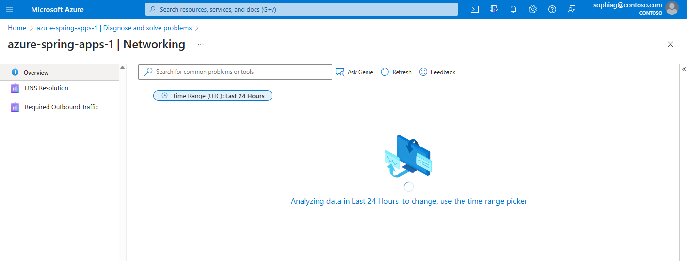 Azure Spring Apps 诊断支持对虚拟网络中运行的应用程序进行交互式故障排除,无需进行配置。 Azure Spring Apps 诊断会识别问题,并指导你获取有助于排查和解决问题的信息。