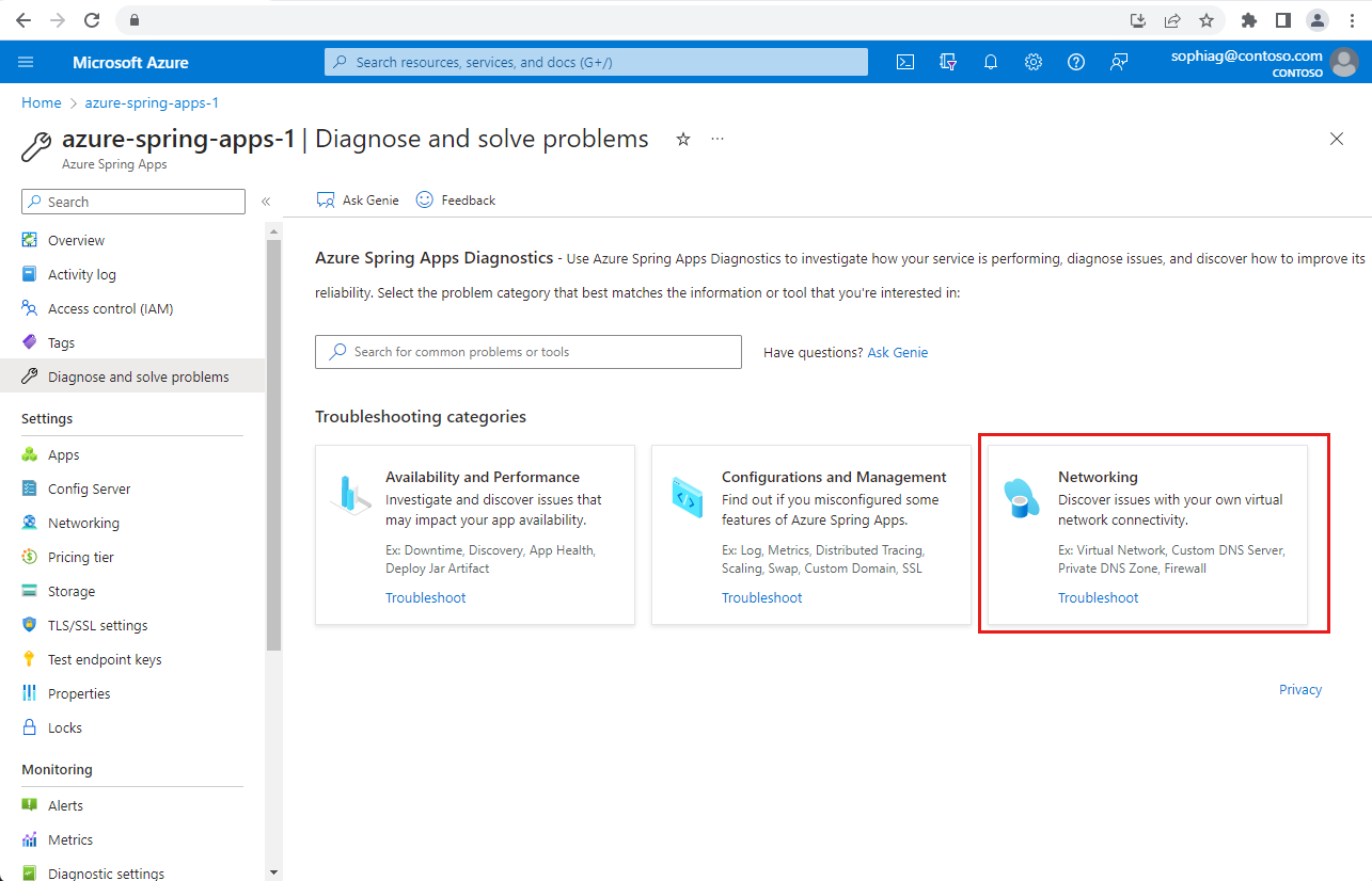 可以检查你是否忽略了任何客户责任。 有关详细信息,请参阅在虚拟网络中运行 Azure Spring Apps 的客户责任。